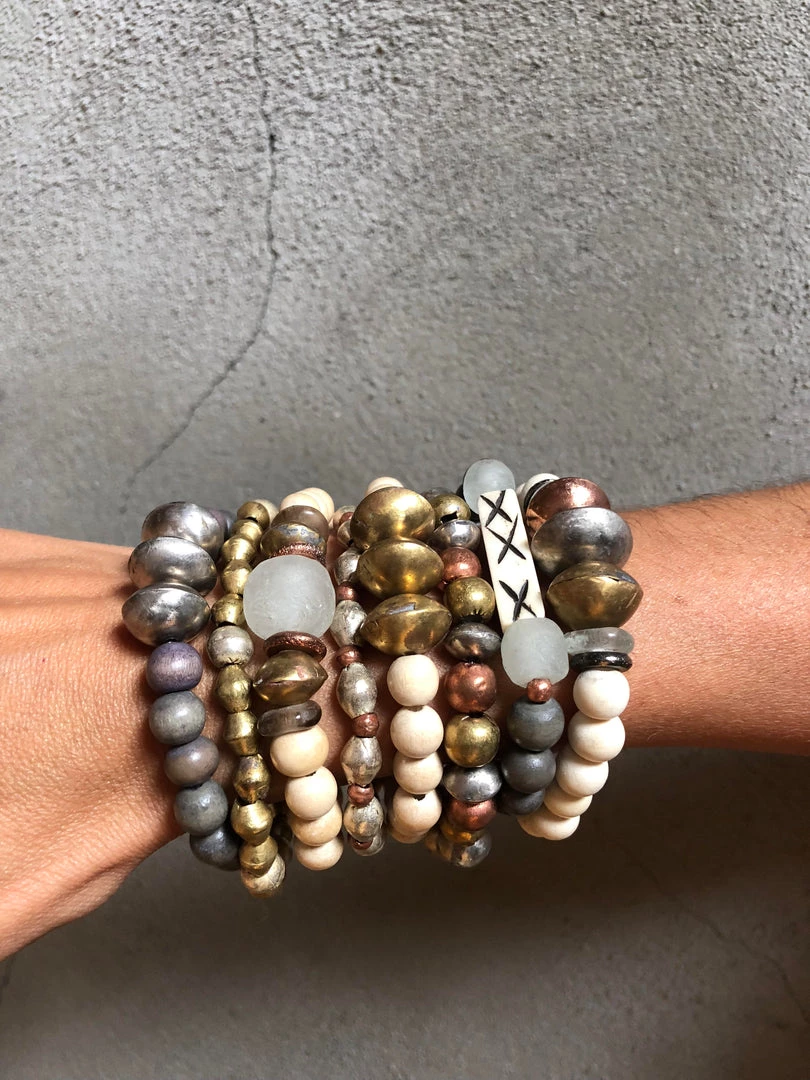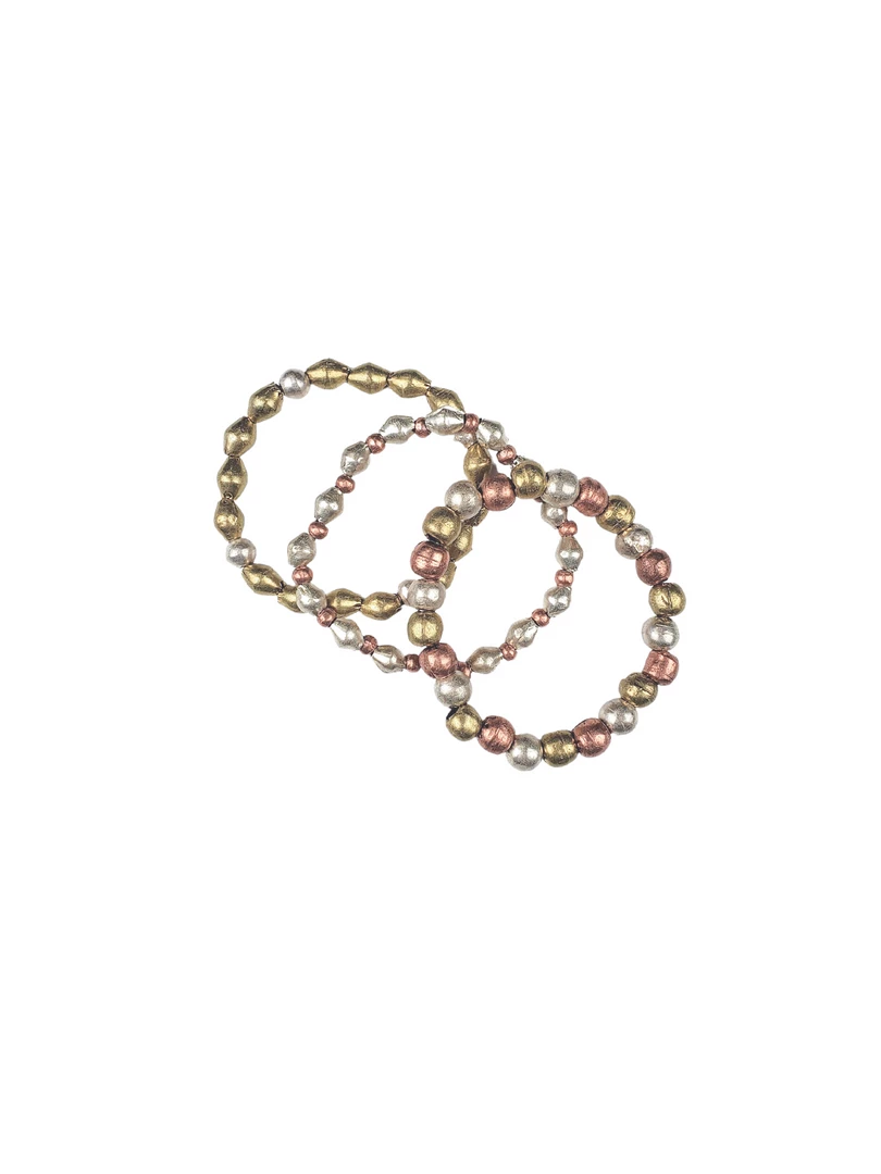 The Twine and Twig Stacks are designed using globally sourced beads. Stacks come as a set of 3 stretch bracelets.