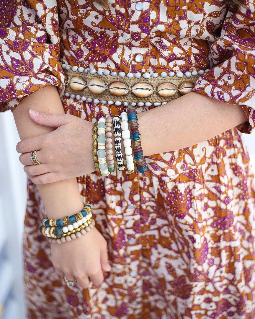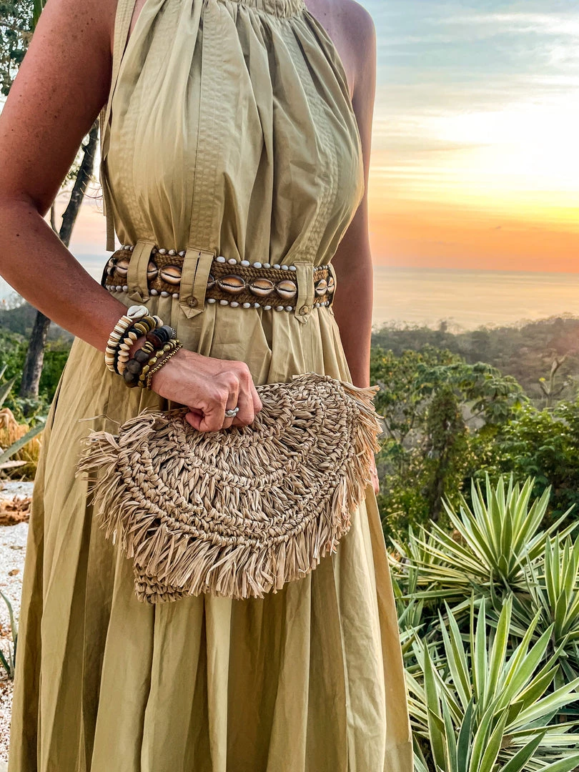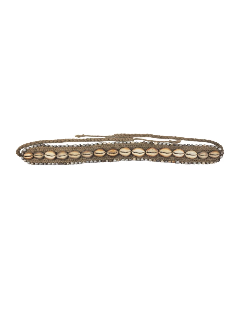 The Twine and Twig Cowrie Belt is designed using natural string made of pineapple leaf fibers woven with cowrie shells.Â