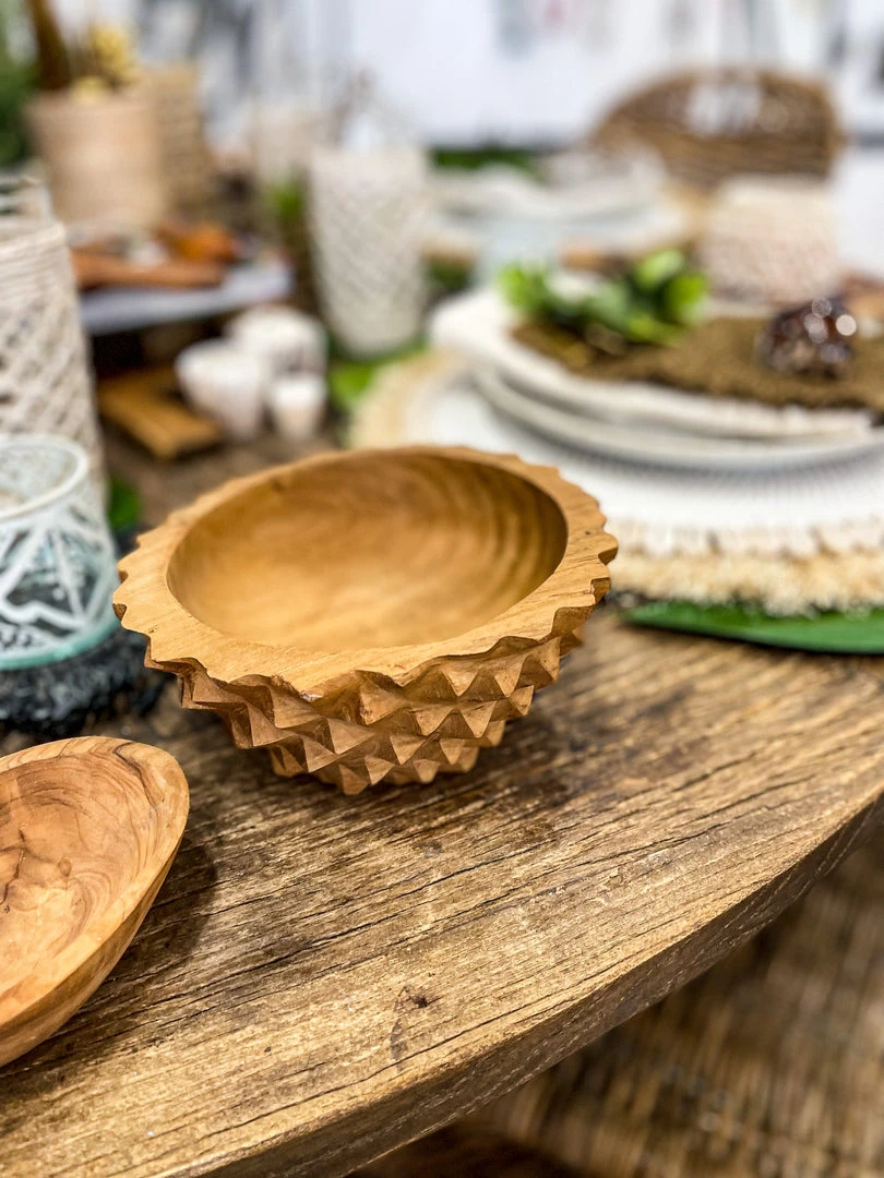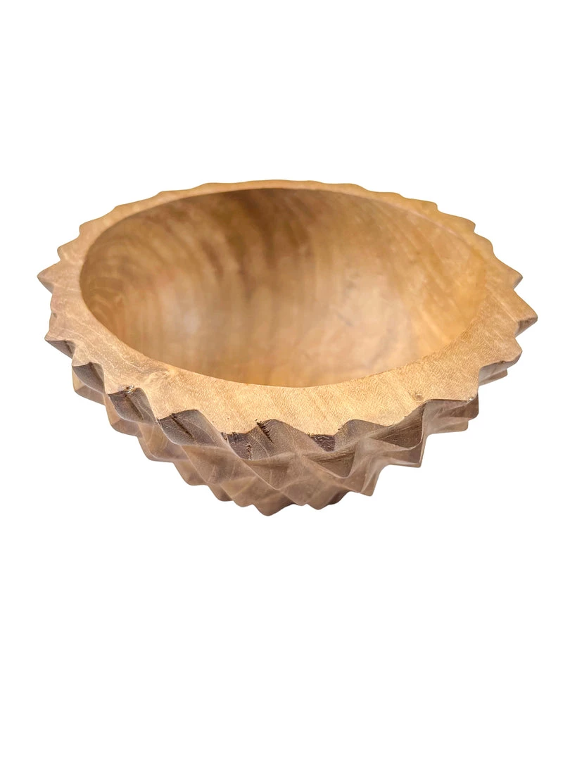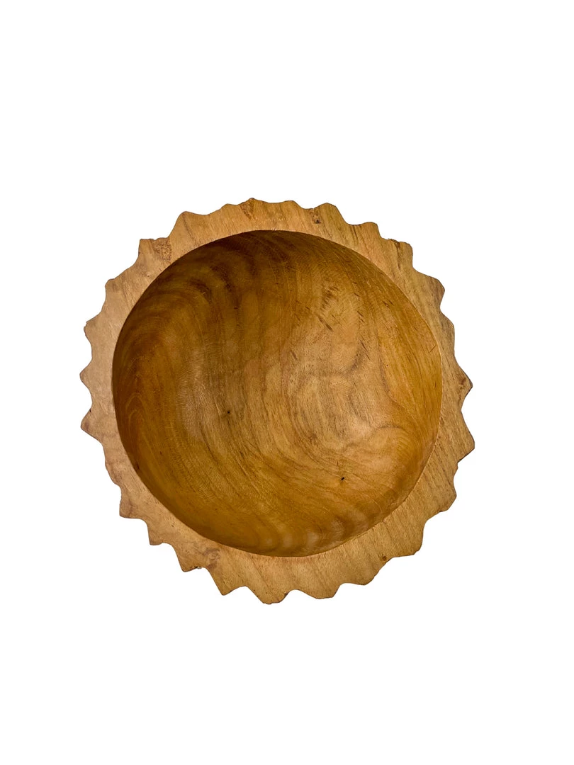 Unique bowl made from teak wood. Display on your table or use for serving.Â