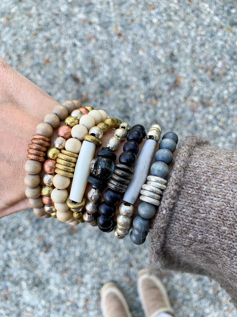The Twine & Twig Duo Set is designed using globally sourced beads. They can be worn individually or stacked up.