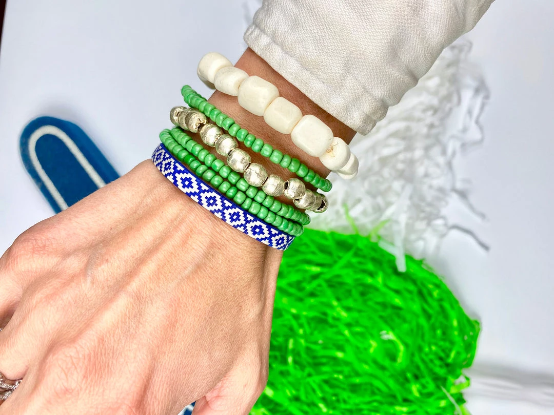 The Twine & Twig Simple Stack is designed using globally sourced beads. They can be worn individually or stacked up.