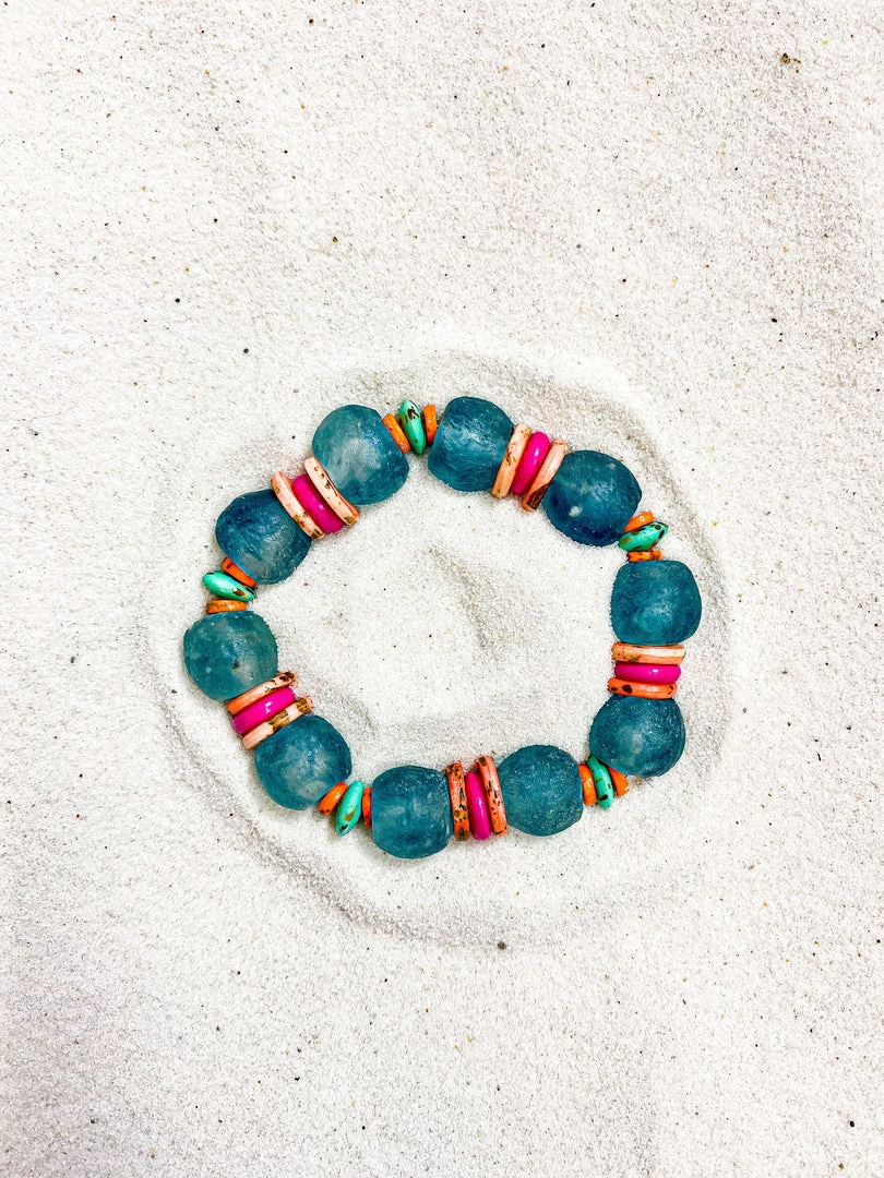 The Twine & Twine Glass Stack is designed using recycled sea glass and globally sourced beads. They can be worn individually or stacked up.