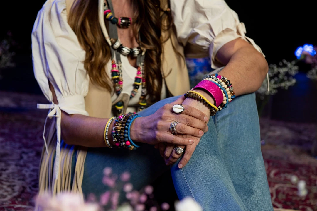 Introducing the WOODSTOCK Collection. Inspired by the infamous Festival of 1969 and all of the many styles we see at live concerts. The rich color + texture combinations make for a big splash right in time to brighten your wardrobe for warmer weather. Whether you are throwing on a graphic tee or a fun dress, these pieces are the perfect POP no matter what you have on! We are looking forward to the days of live music and feeling free spirited again.