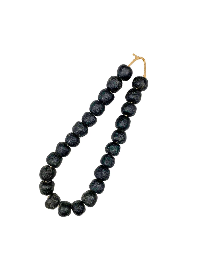 These recycled glass strands are handmade by people of Ghana- hand picked by Twine & Twig. The beads are made from scrap and unusable glass products that are ground to a fine powder before being poured into clay molds and baked turning them into these stunning glass beads.