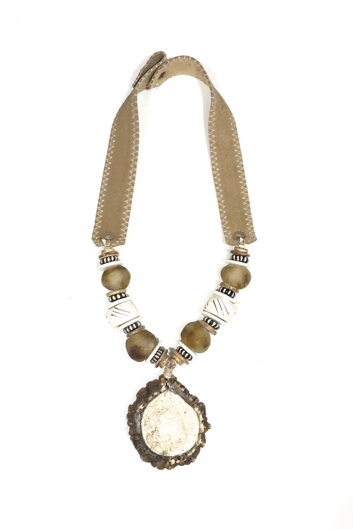 The Twine & Twig Mid Burr necklace is designed using globally sourced beads with a naturally shed elk burr and are tied onto branded suede straps.Â