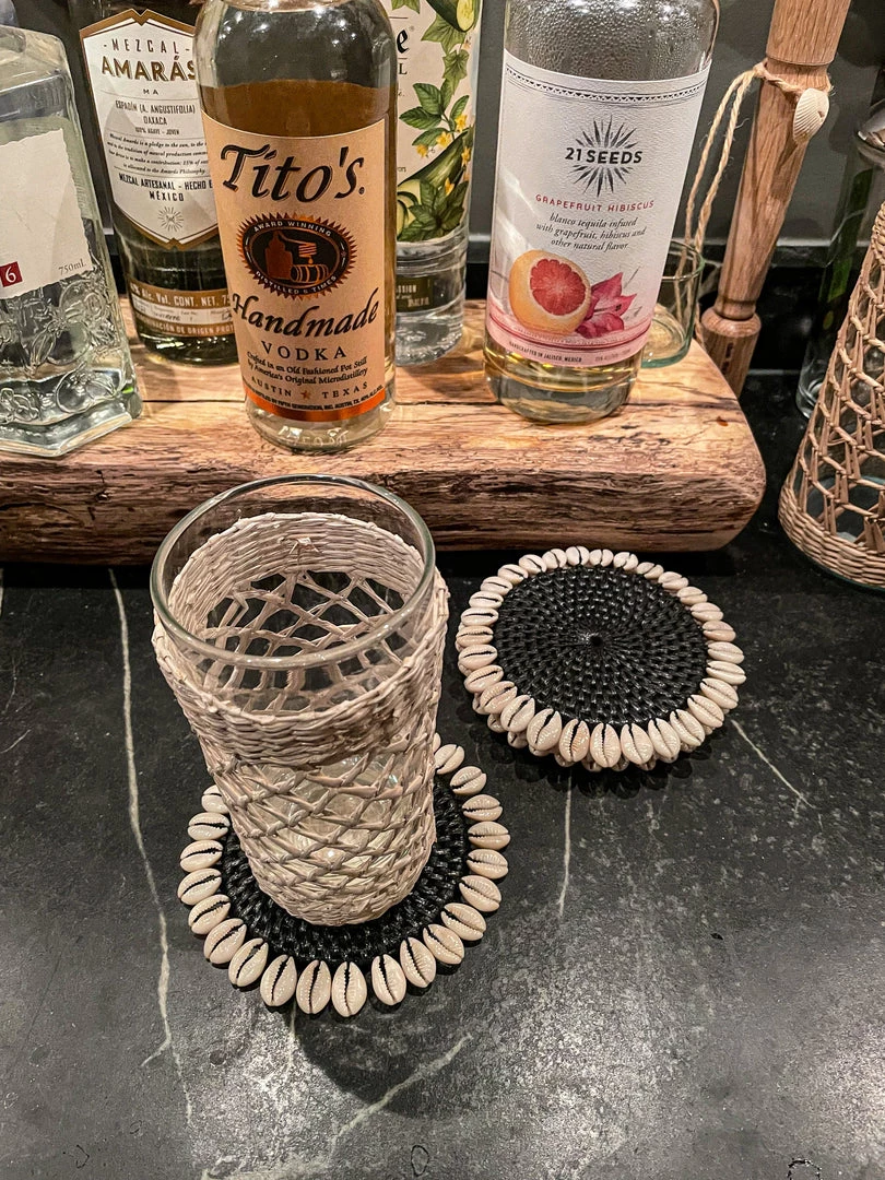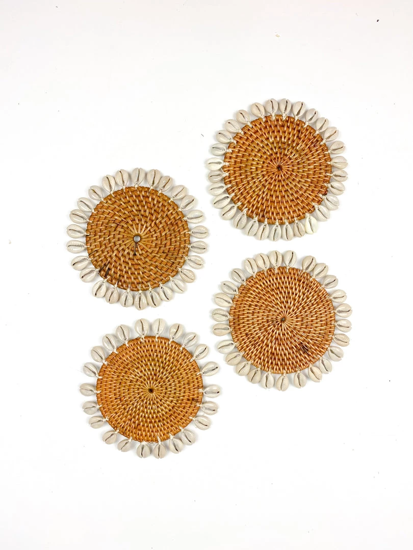Add a lovely coastal touch to your table setting! These coasters are hand-woven from rattan reeds and embellished with cowrie shells, adding a tropical vibe to your dining area. Pairs seamlessly with your natural, bohemian, or simplistic dining decor.