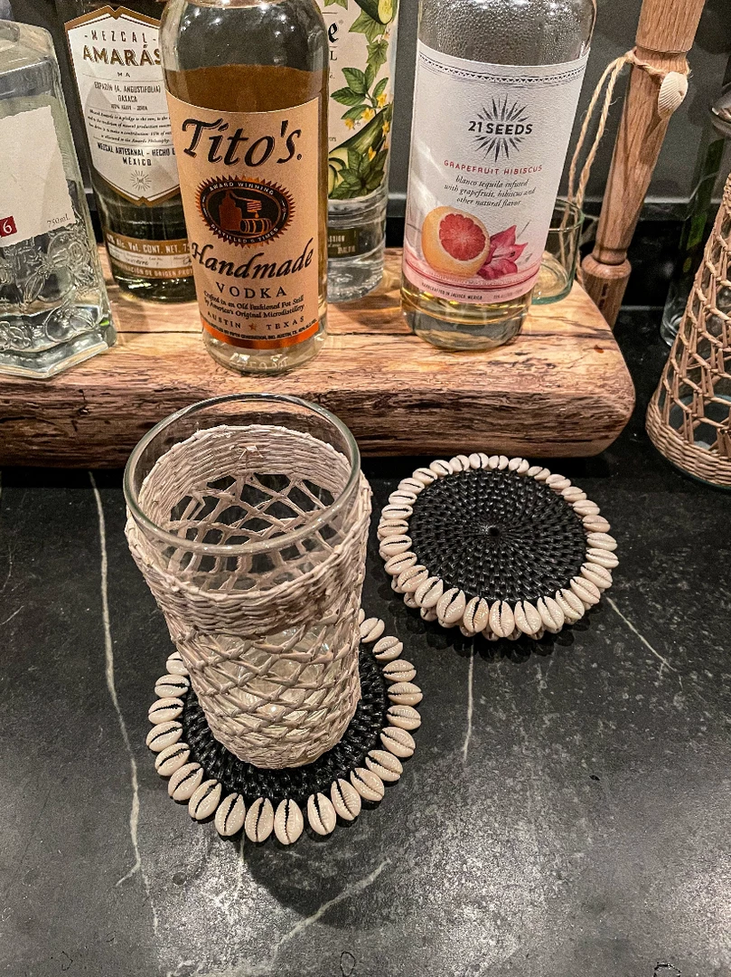 Add a lovely coastal touch to your table setting! These coasters are hand-woven from rattan reeds and embellished with cowrie shells, adding a tropical vibe to your dining area. Pairs seamlessly with your natural, bohemian, or simplistic dining decor.