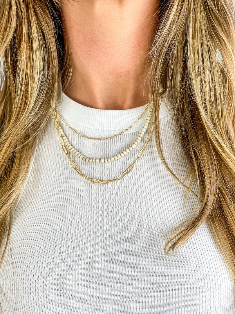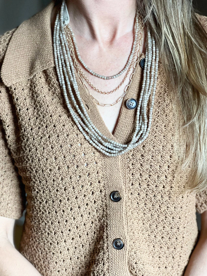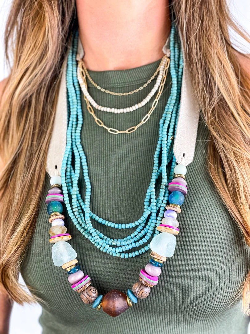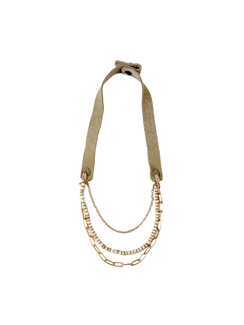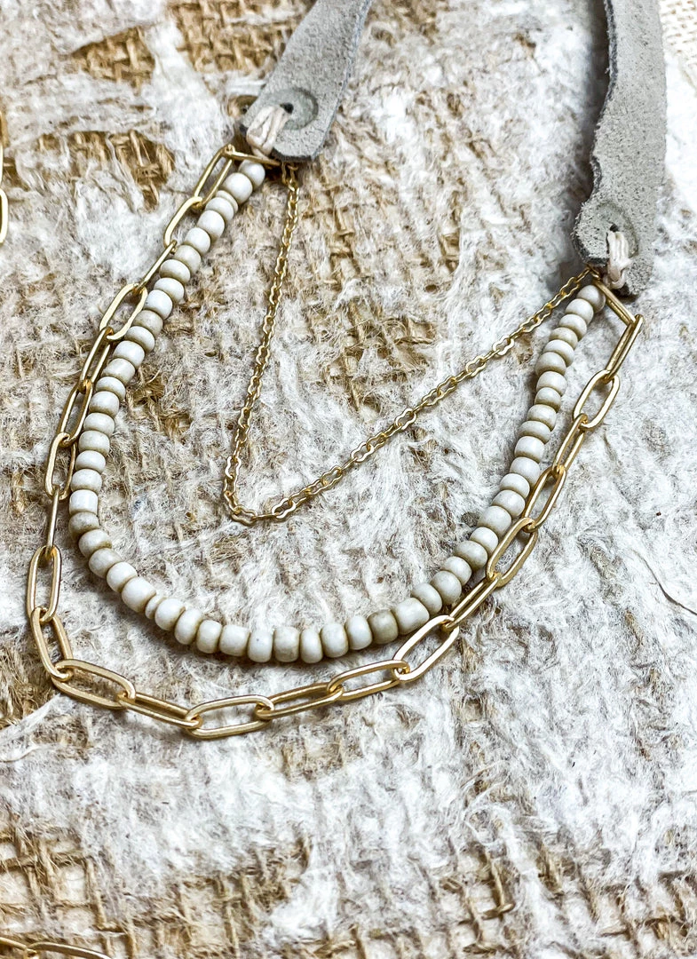 Introducing the Twine & Twig Slim Classic Collection. We have designed a tiered collection that eliminates the hassle of tiny clasps with a single stud closure while showcasing the look of layered necklaces. Mixed metals and seed beads combine to create a subtlety chic style. Necklaces are tied onto adjustable slim suede straps. Wear alone or layer in with your favorite T&T pieces!