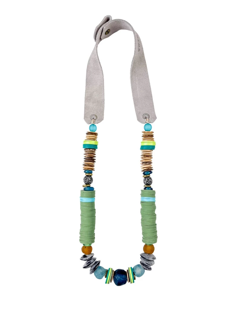 The Twine & Twig Stacked Classic Necklace is designed with globally sourced beads and tied onto our signature branded suede straps. The necklace features two length options with a brass snap closure.Â