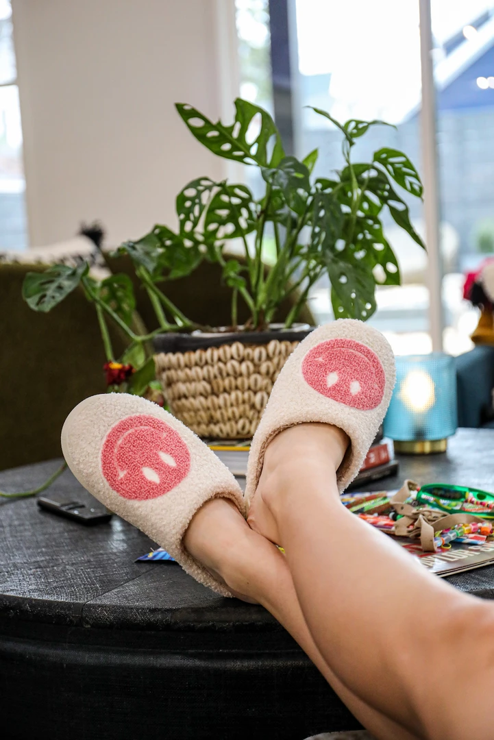 Slide into these fluffy slippers when you need a mood booster and keep your feet cozy and comfy in these smiley face slippers!