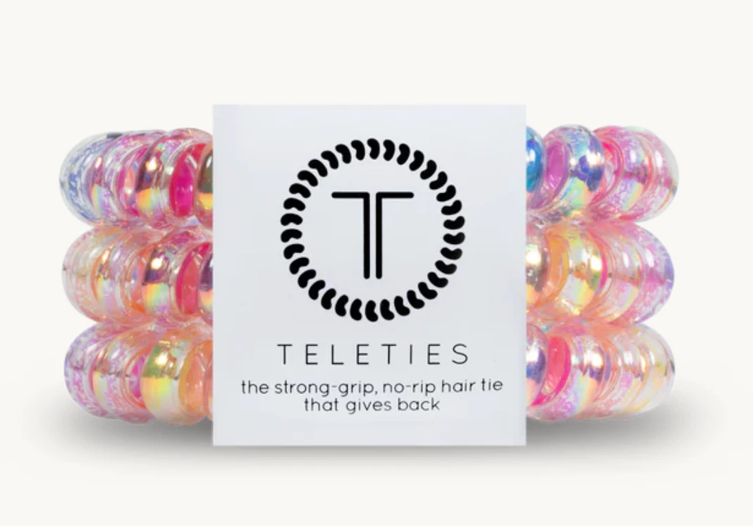 Hold your hair and enhance your style with TELETIES. The strong grip, no rip hair tie that doubles as a bracelet. Strong, pretty and stylish, TELETIES are designed to withstand everyday demands while taking your look to the next level.