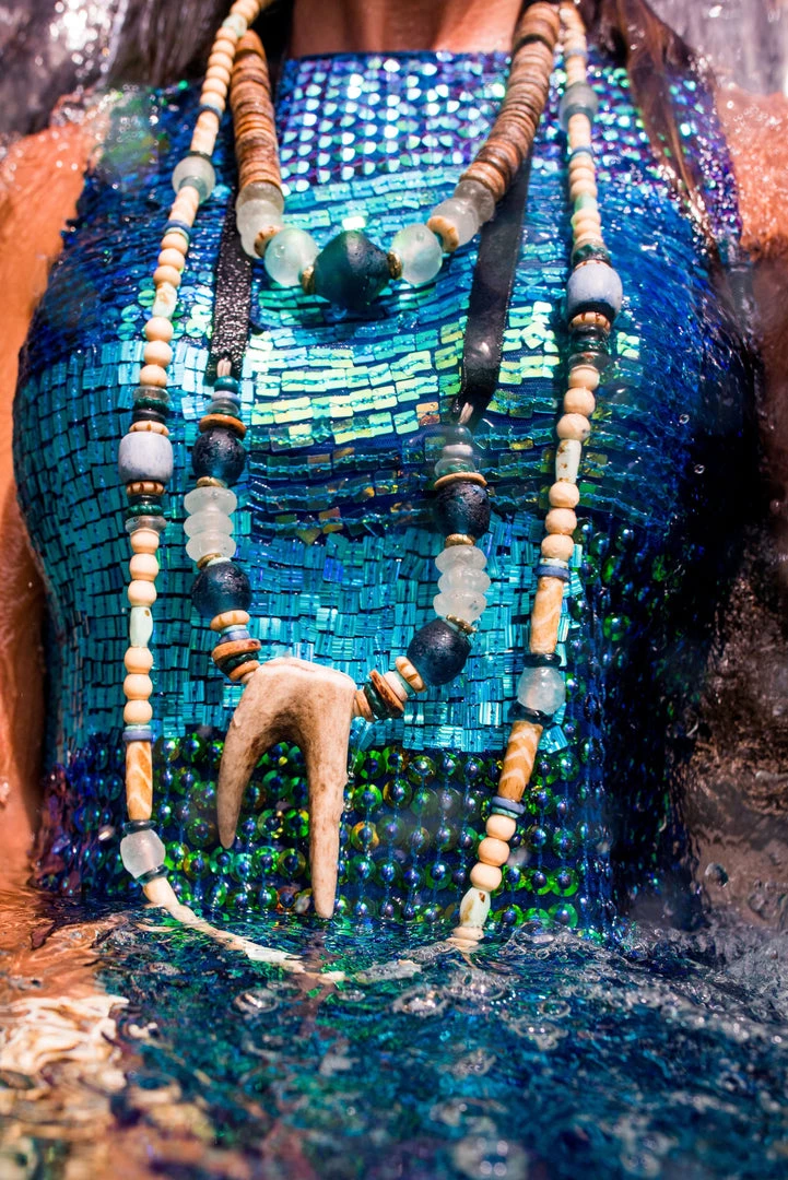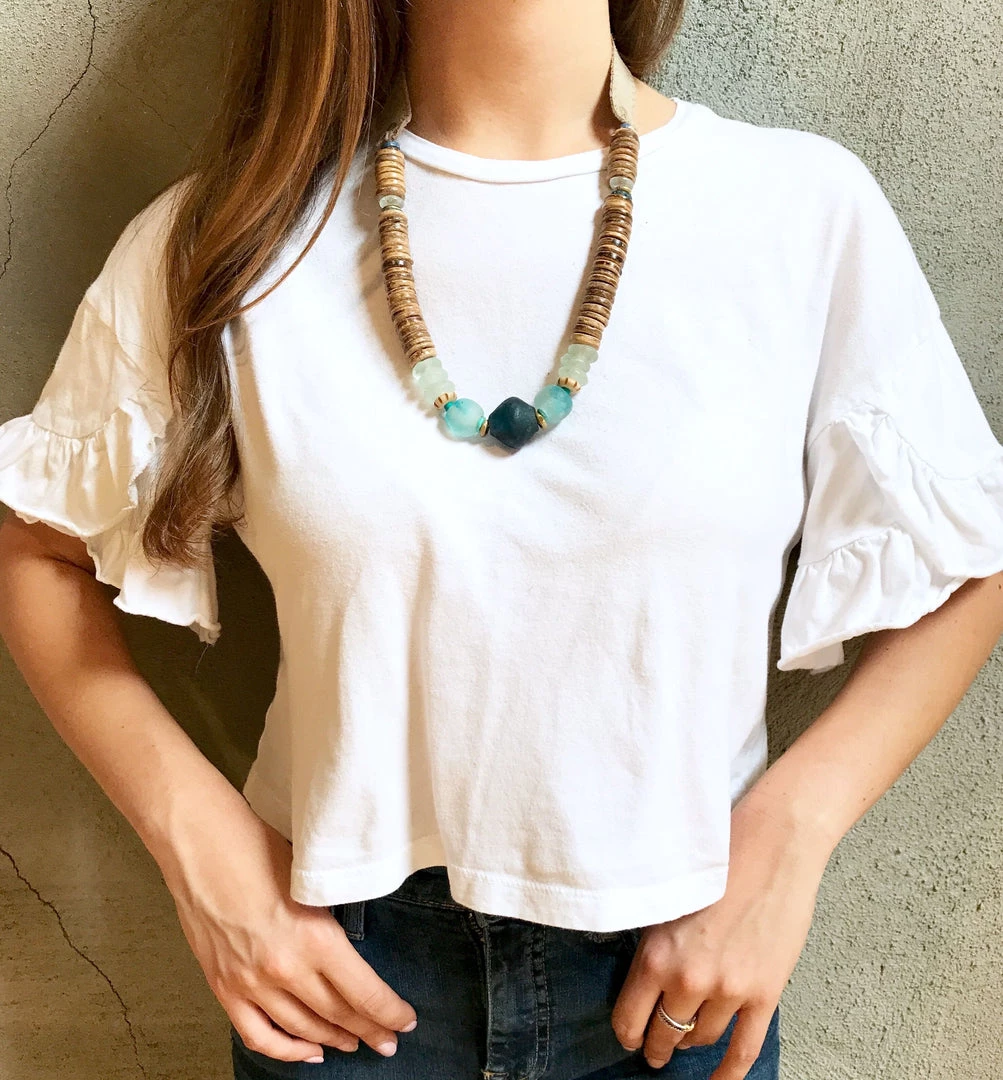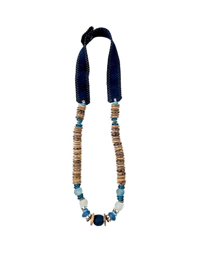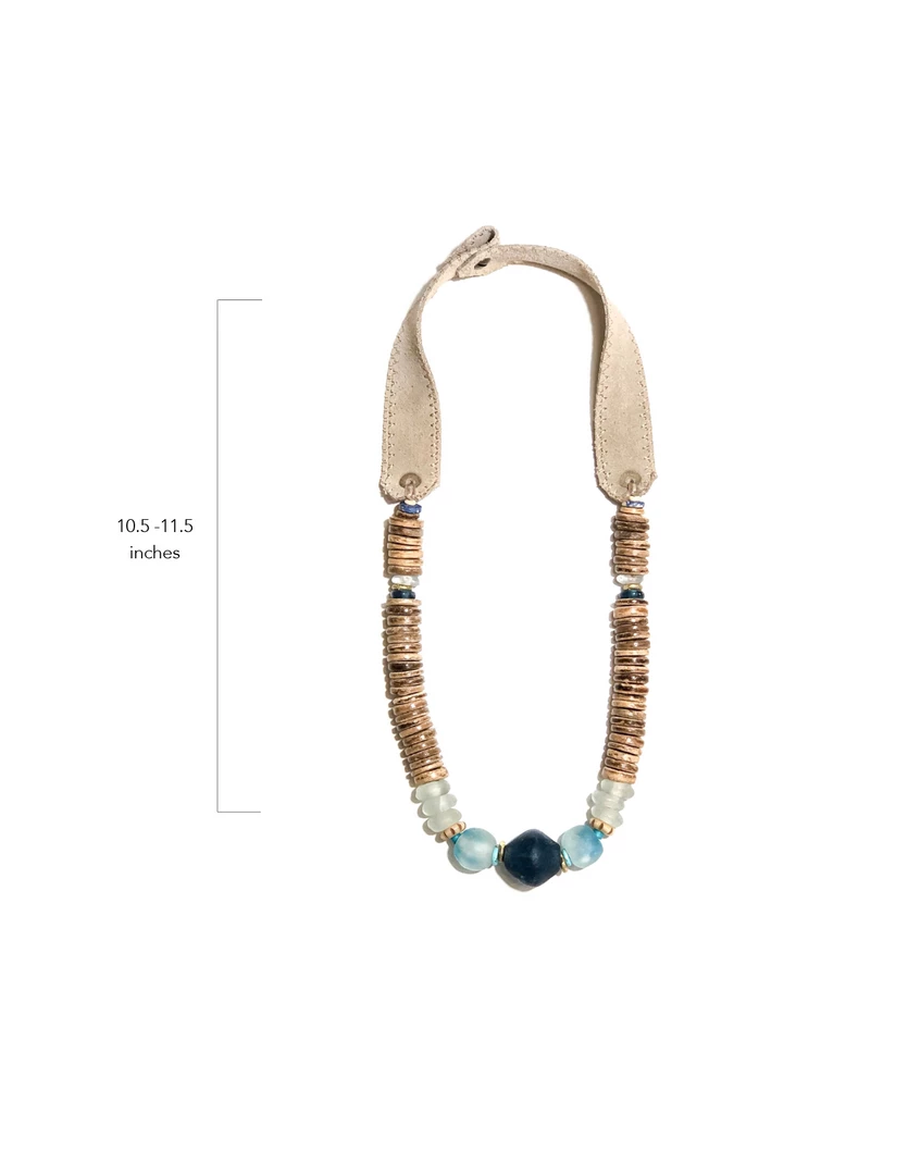 The Twine & Twig Stacked Classic Necklace is designed with globally sourced beads and tied onto our signature branded suede straps. The necklace features two length options with a brass snap closure.