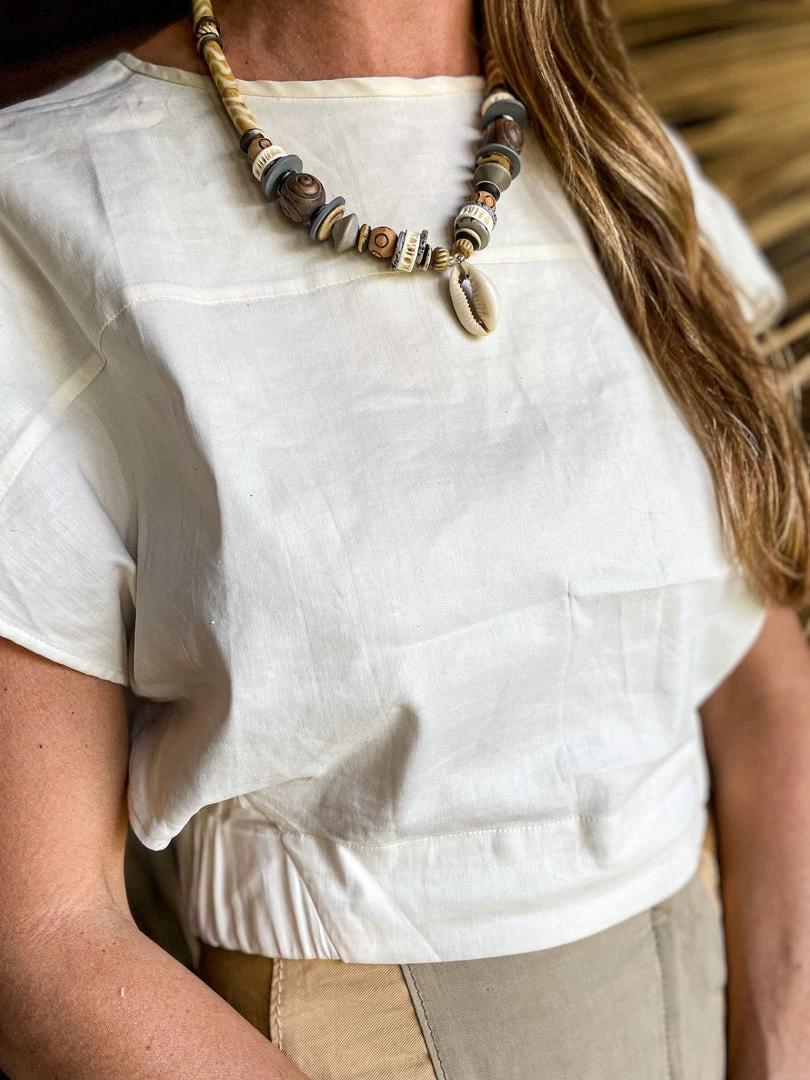 The Twine & Twig Tribal Choker Necklace is designed with a mini cowrie shell, globally sourced beads and makes the perfect layering necklace. Stretch closure allows for one size fits all.