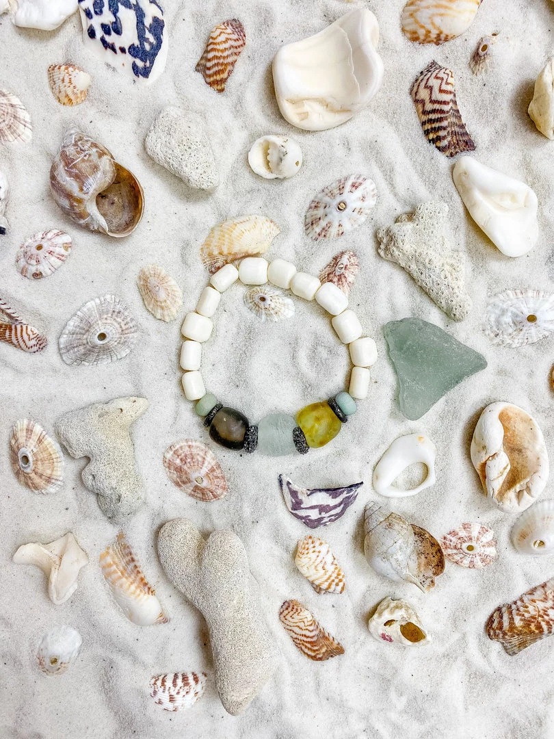 Introducing Sea Glass, the perfect summer neutral collection with a pop of sparkle. An ode to our original Tones Collection, this capsule is inspired by the the ocean’s beauty and the way the sun reflects on the sand. Made with recycled glass & pavè.
