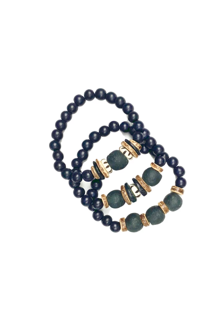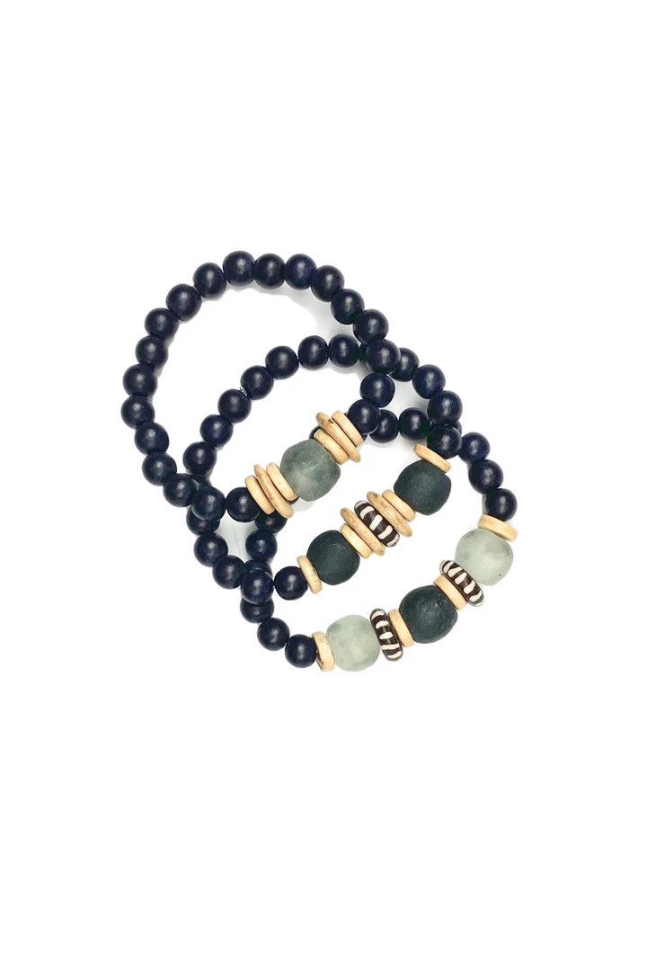 The Twine and Twig Stacks are designed using globally sourced beads. Stacks come as a set of 3 stretch bracelets.