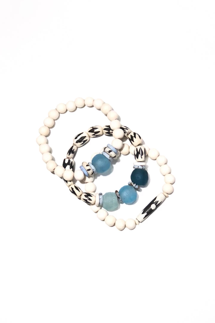 Twine and Twig Stacks are designed using globally sourced beads. Stacks come as a set of 3 stretch bracelets.