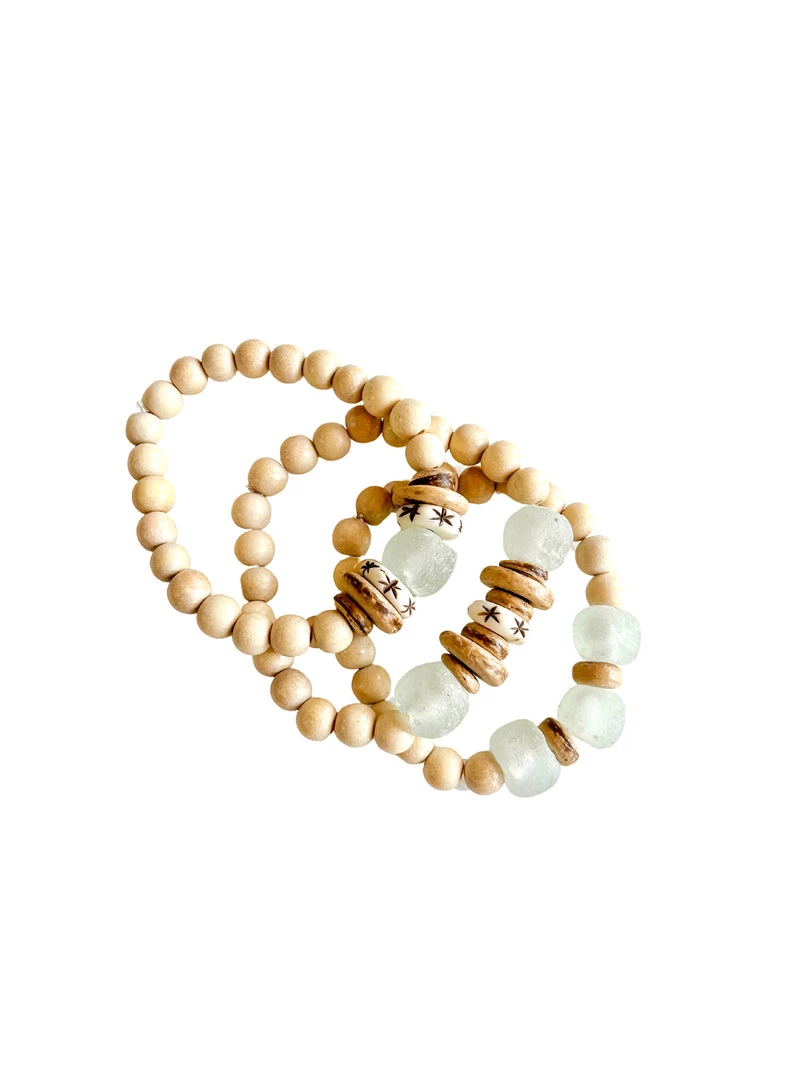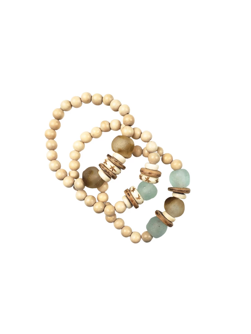 The Twine and Twig Stacks are designed using globally sourced beads. Stacks come as a set of 3 stretch bracelets.Â