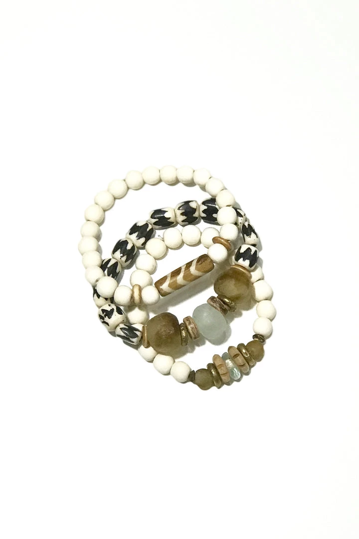Twine and Twig Stacks are designed using globally sourced beads. Stacks come as a set of 3 stretch bracelets.