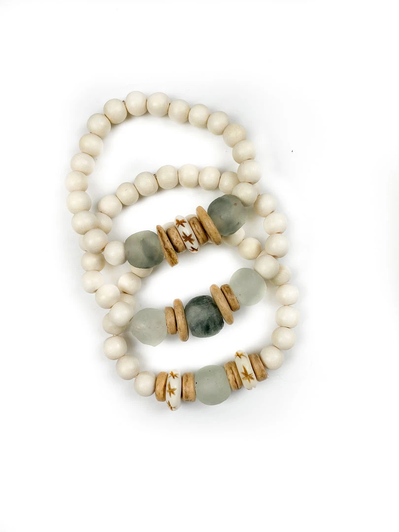 The Twine and Twig Stacks are designed using globally sourced beads. Stacks come as a set of 3 stretch bracelets.