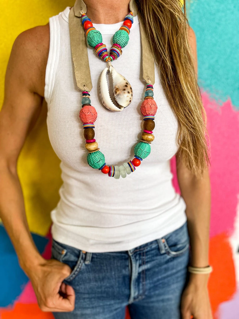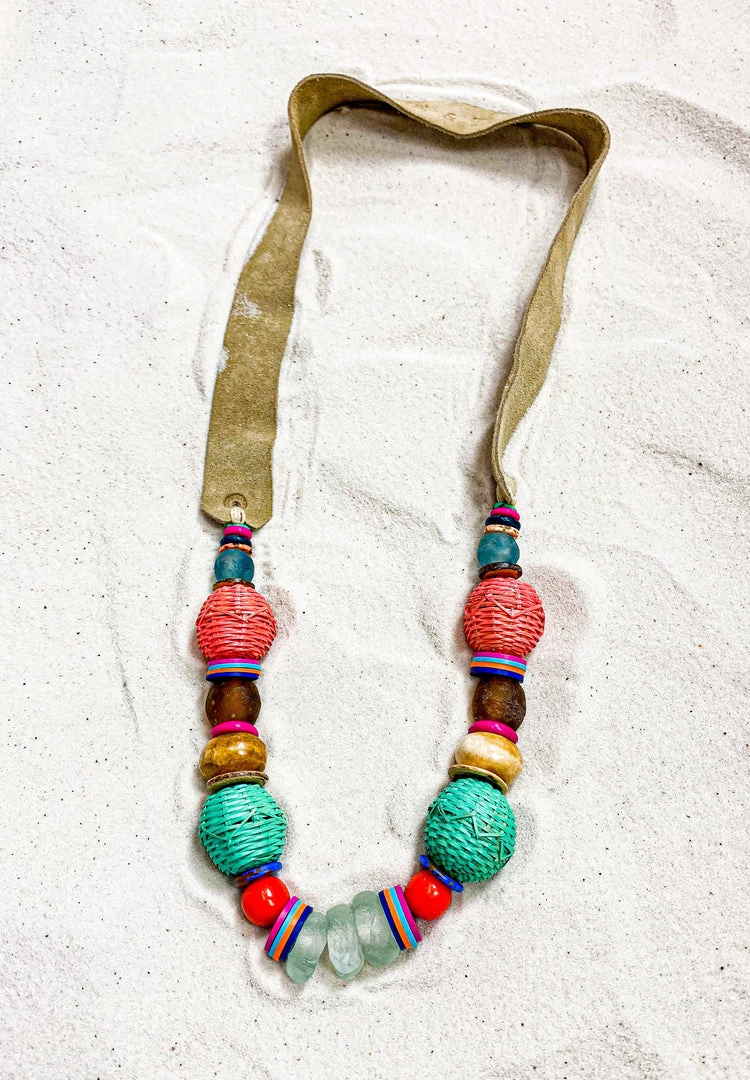 The Twine & Twig Mid Classic Necklace is designed with globally sourced beads and tied onto our signature branded suede strap.