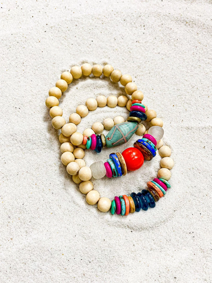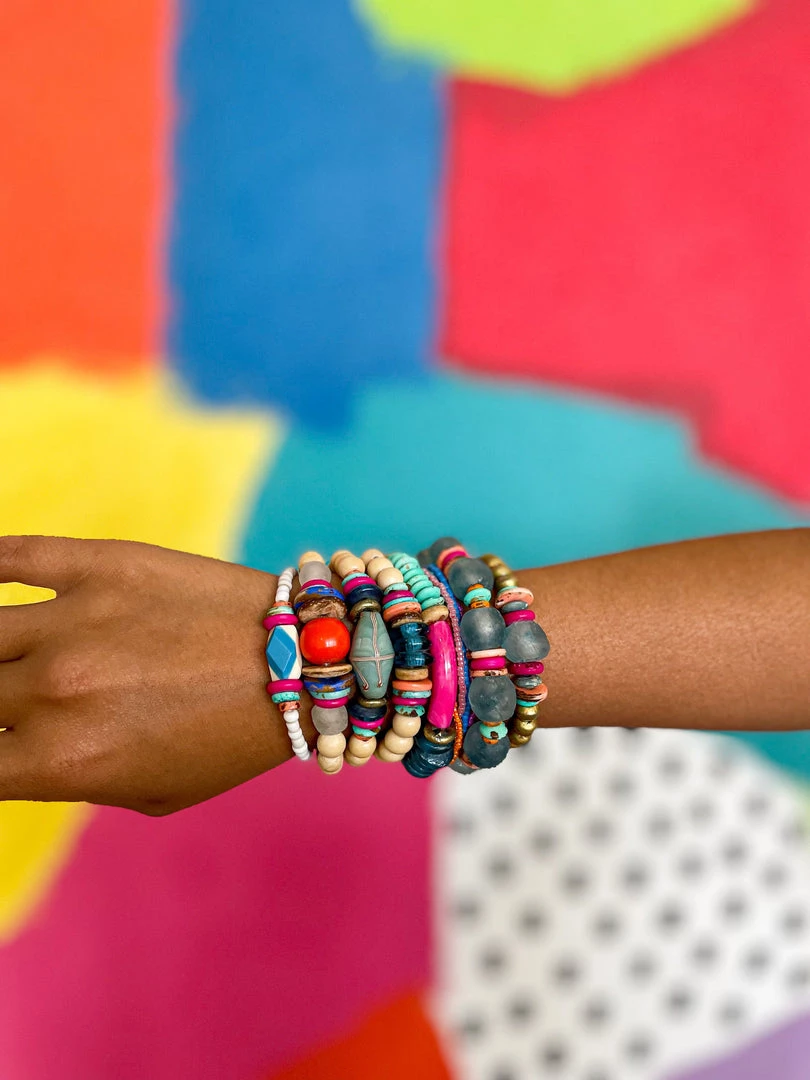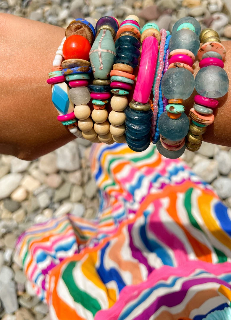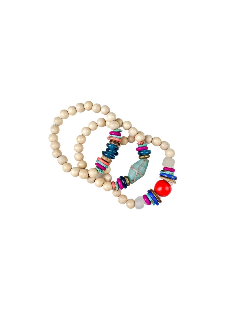 The Twine and Twig Stacks are designed using globally sourced beads. Stacks come as a set of 3 stretch bracelets.