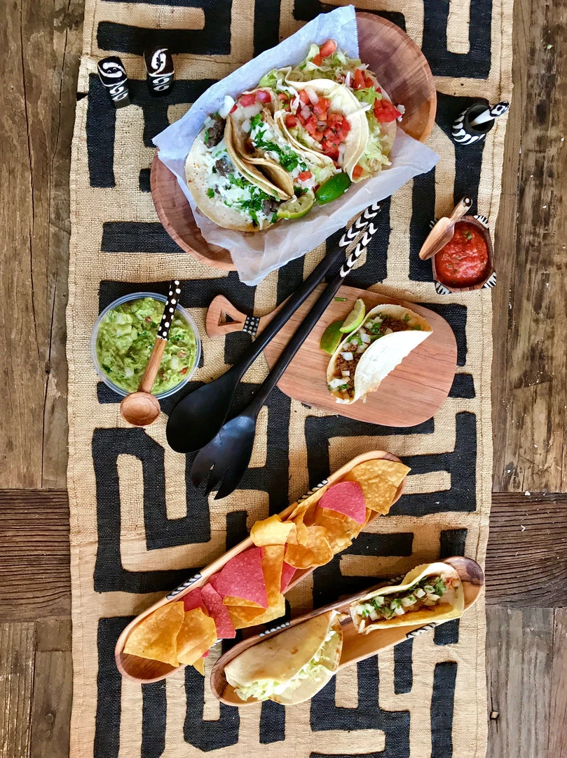 To care for wild olive wood serving pieces, wipe clean with a damp cloth, dry and rub lightly with olive or mineral oil before storing.